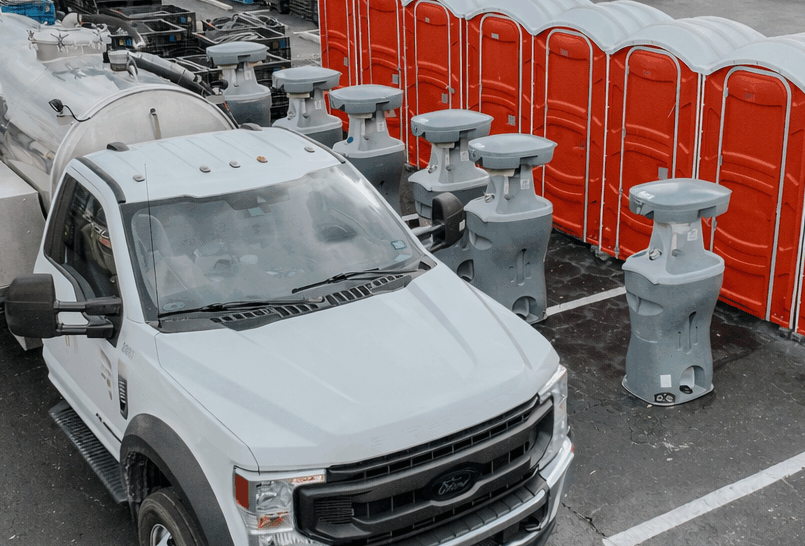 Portable restroom support, handwash, servicing schedules, and compliant waste handling.